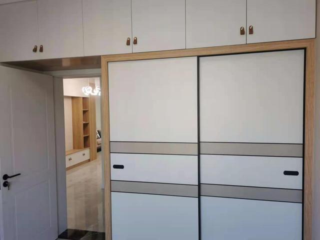 房间也是非常的自然舒适,适合休息,白色和原木色的组合,让房间又多了一份禅意。房间的橱柜也是做的到顶橱柜,满足日常的生活所需。收纳能力超级棒。