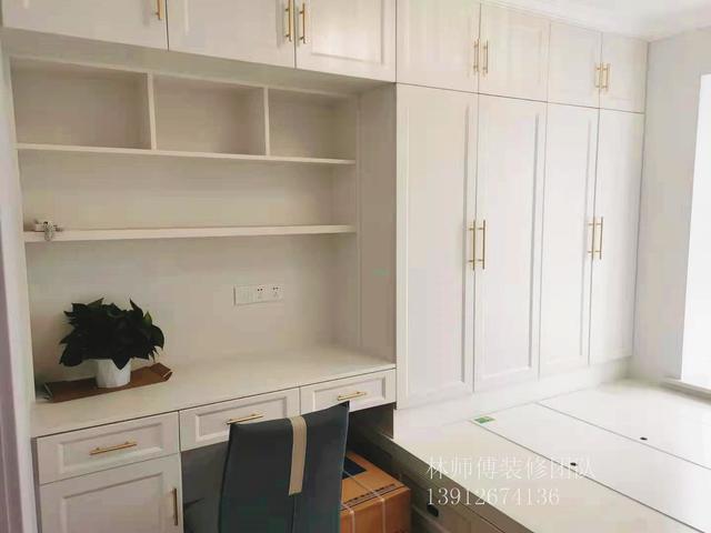 次卧采用榻榻米加书柜的组合,一房多用。储物、休息、学工作都可以!