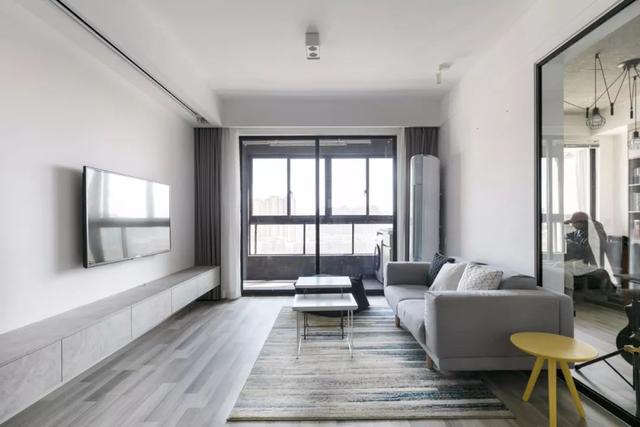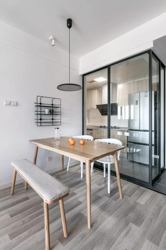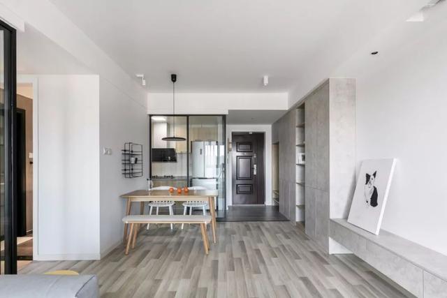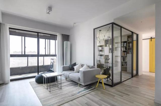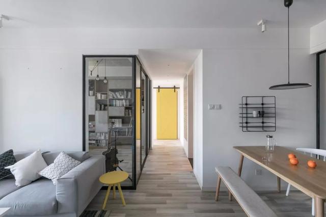 这一套是93平米的家,由3房变成2房,并大量使用玻璃,原本不大的小家,变得格外的明亮宽敞。灰、白、木色的搭配,视觉上干净素雅,让家变成舒适轻松的归属地。