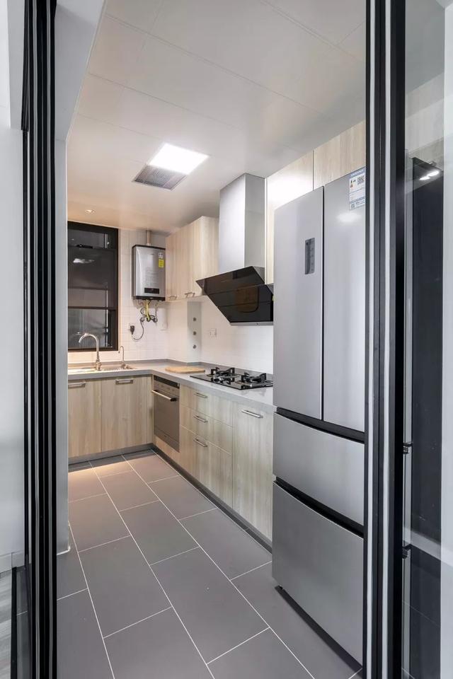 灰白木色的厨房空间,看上去干净自然。