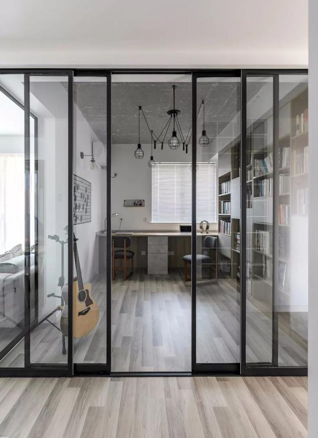 独立的书房为了满足私密性,用了玻璃移门和墙体做链接,让开放性和私密性共存 。