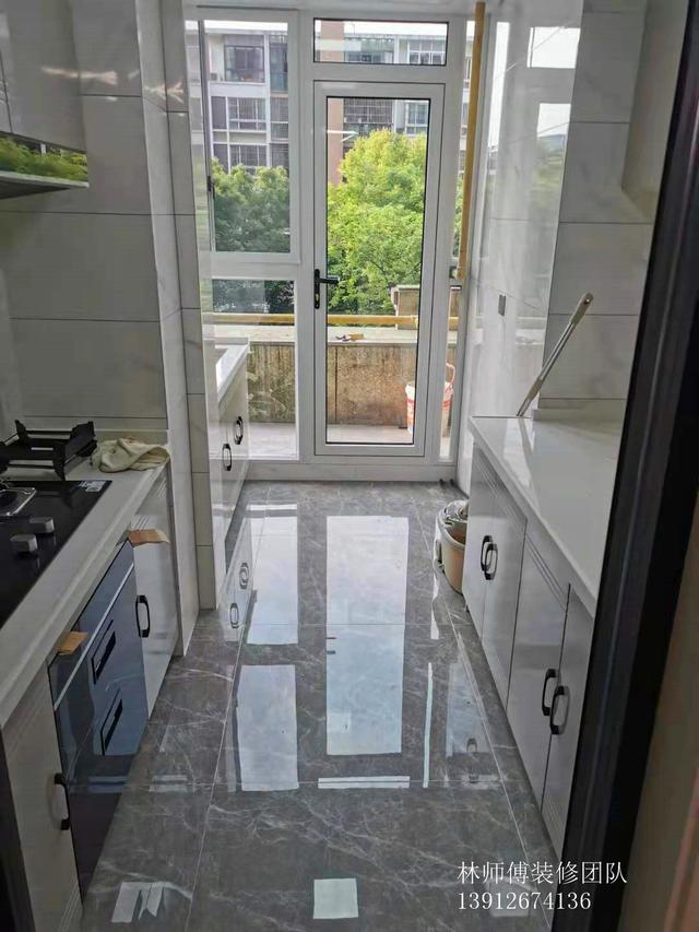 厨房做了扩容,将北阳台收入了厨房空间,而且北面是玻璃,这使得整个厨房的采光非常好。两边做了一字型橱柜,符合厨房动线,一遍是配菜区,另一半是烹饪区。