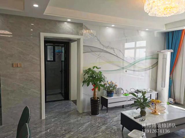 电视背景墙用的大理石,水墨纹理非常有诗意。