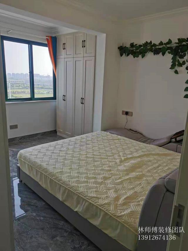 把生活阳台纳入了卧室空间,这样房间不仅光线更好,而且空间也更宽敞了。