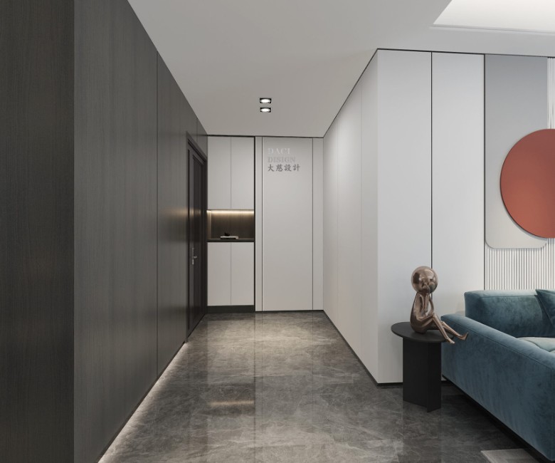 鞋柜内置灯带,无主灯设计照明加持下,空间更显得简洁干练,极具层次感。