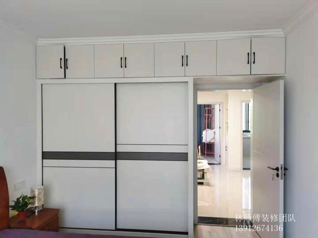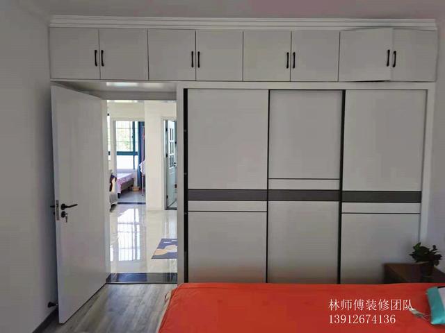 两个卧室的设计都是以干净舒适为主。衣柜的顶部做了一排吊柜,平时用来收纳不常用的衣物或被褥。