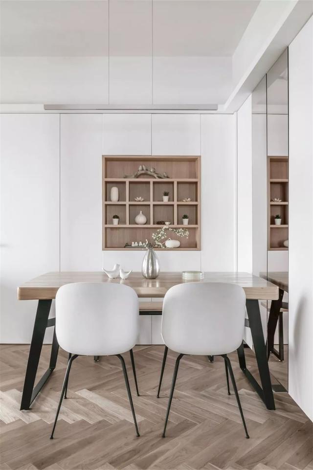 纯粹的木质材料,搭配大量的留白墙面,可以缔造一种简约到极致的美好感受,以从容优雅的姿态书写着现代生活的新篇章。