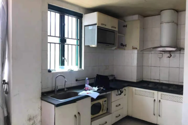开放式厨房,有两个窗,白天采光很好,加上厨房白色的墙砖,整个空间很通透明亮,改造时充分利用了空间,做成了G字型的厨房。