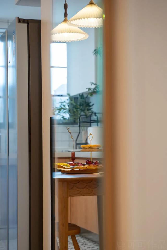 餐厅定做了卡座,地柜可增加收纳,固定的坐位不需要给餐椅留位置,更省空间,日常可以满足六人用餐。