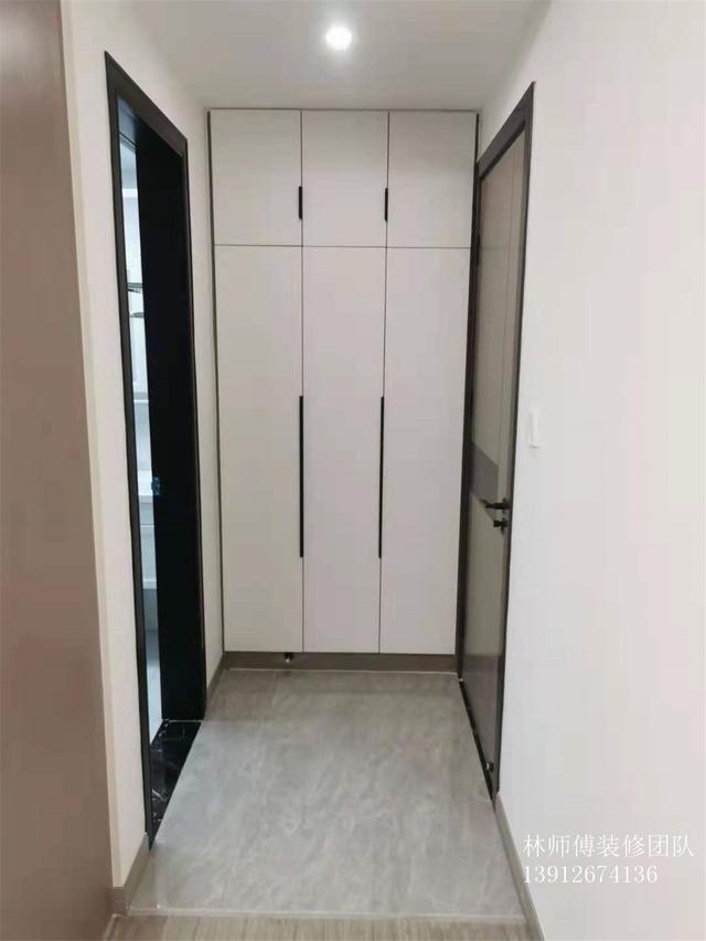 过道尽头也利用起来设计了橱柜,整面的到顶橱柜收纳能力也非常棒,而且颜值还非常高哦。