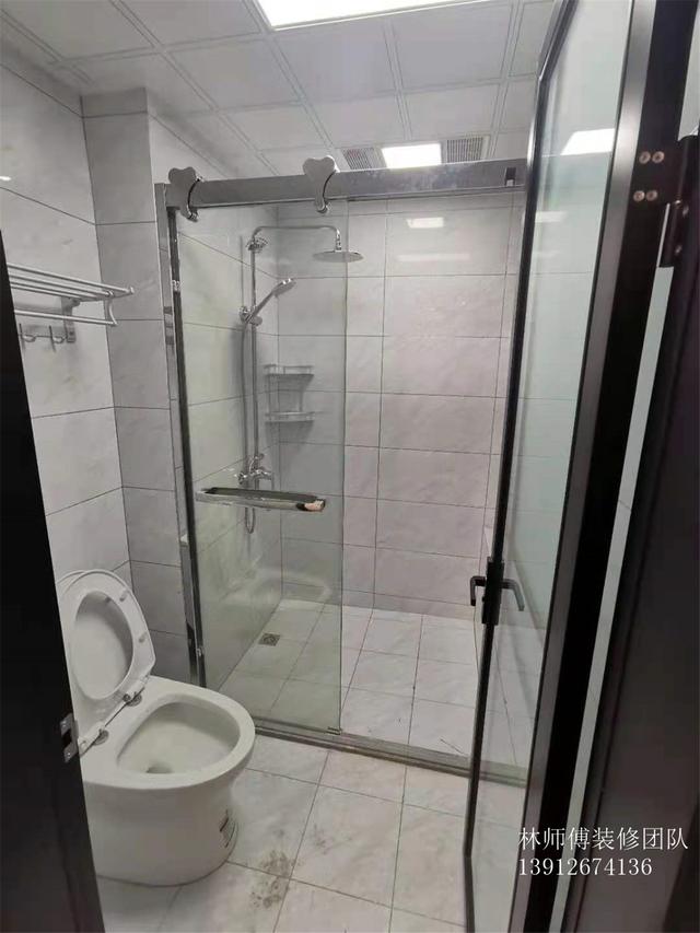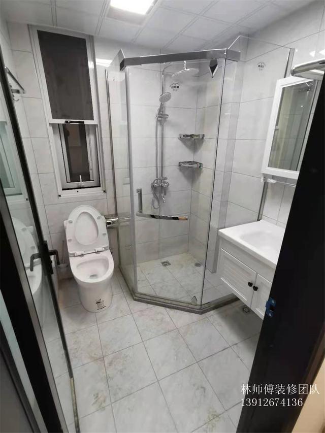主卫的空间比较紧凑,所以淋浴房做了钻石型的,比较节省空间。