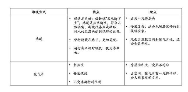 1.采暖要求:若是你是朝九晚五的上班族,需要快速升温,就可以考虑一下暖气片;若是你家常有人待着,就可以看看地暖。