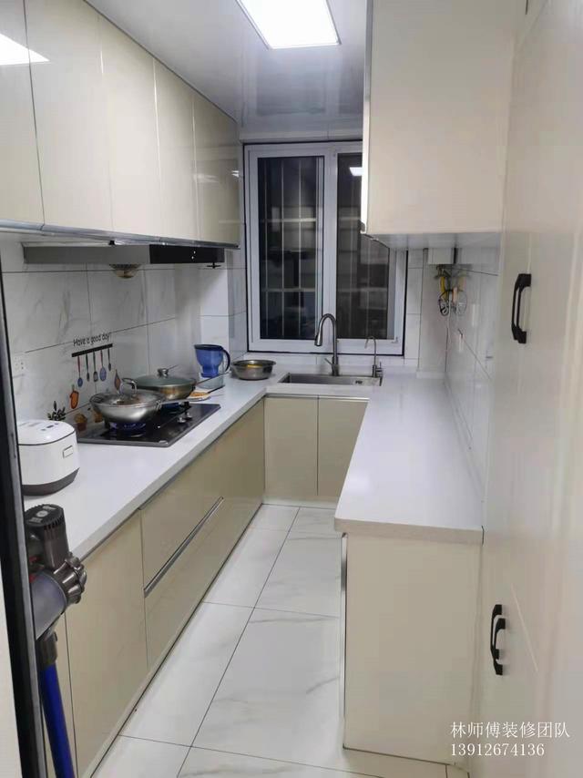 厨房是非常实用的U型设计,动线合理,配菜区和烹饪区,夫妻两可以一起配合,谁都不做甩手掌柜,一起准备美食。
