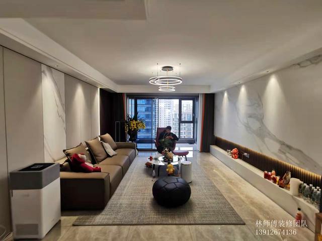这是裕元新天地的一套装修实景案例,140平米的改善型房,4房2厅,房屋整体采用冷灰色调打造基地,凝练简约现代的生活质感,在木与石的相互交织下,勾勒出轻奢格调感。