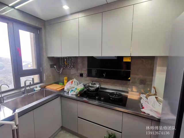 厨房设计动线合理、功能齐全,整体配色也是非常的舒适耐脏,厨房里也有窗户,采光非常好,一体式的台下盆也非常实用。