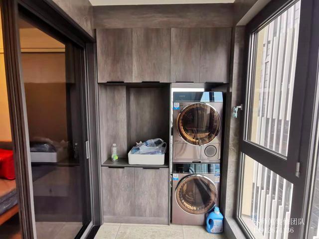 双阳台很舒服,大大的落地窗,每当阳光洒进来,那感觉真的很美好。阳台的一面是洗晒区,另一面是休闲区。分工明确,互不干扰,让阳台得到了充分的利用。