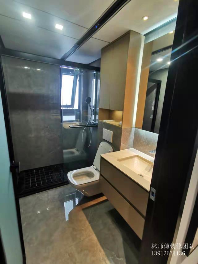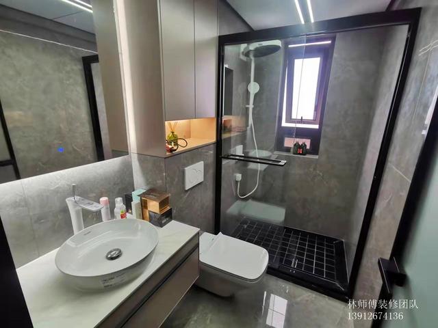 家里的两个洗手间都做了干湿分离,方便清洁。灰色系的瓷砖加上一些藏光的设计,显得洗手间都非常高级。马桶上方的空间也分别都做了储物,镜面柜也是储物的一把手,能装下不少东西呢。