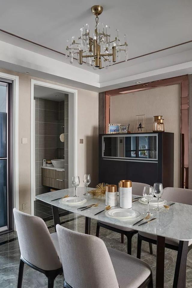 轻奢风格追求以最简洁的设计手法来打造奢华气派,造型上的简洁是为了赋予材质上的奢华,所谓材质的奢华并非指传统意义上的豪华与昂贵,而是指材质本身表现出的华丽感。