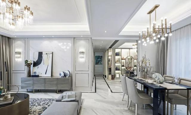 轻奢风格注重硬装修手法的简洁,但也并不像一般的简约风格那样随意。在“轻奢风格”的空间里,看似简洁朴素的外表之下却常常折射出一种隐藏着的贵族气质,这种气质大多数通过各种细节来体现。
