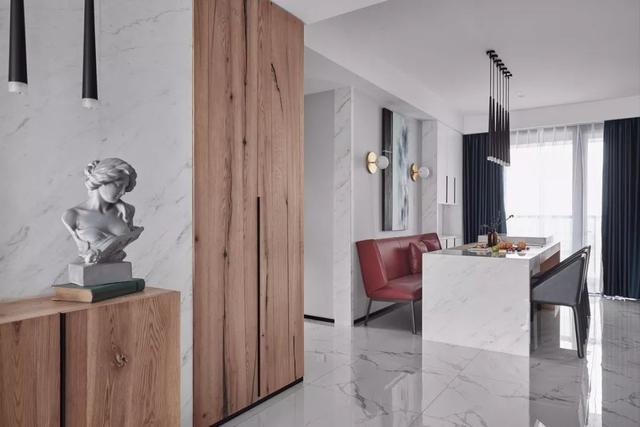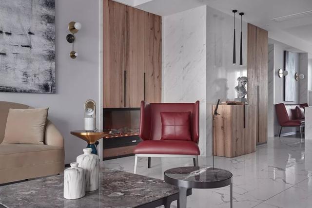 6、温暖的木饰面:木材具有一种特有的温度,无论是深色或浅色都对轻奢的表现非常有帮助,木材的温度能增强整个家居的温馨感。