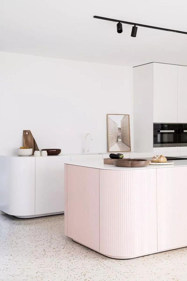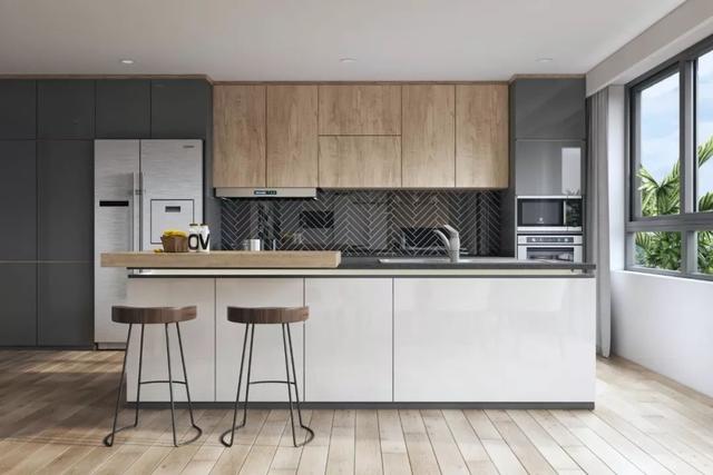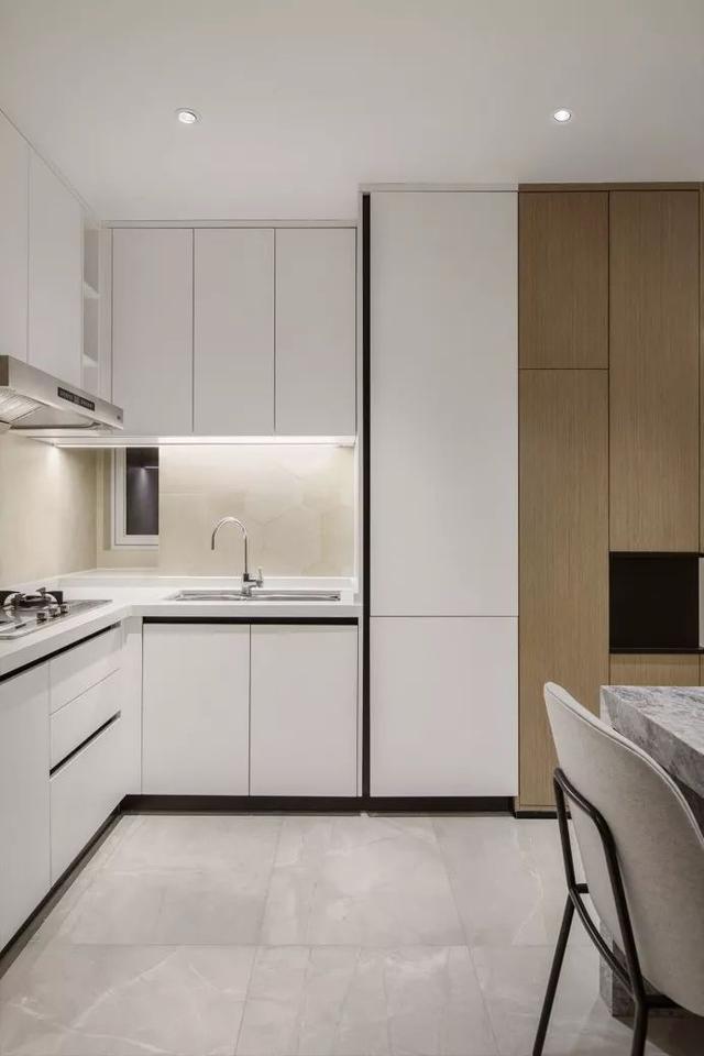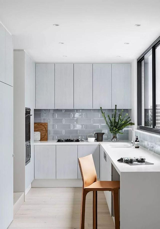 现在越来越讲究整体美观感,把柜面把手,厨房电器,隐藏起来,让视觉空间更加清爽干净。