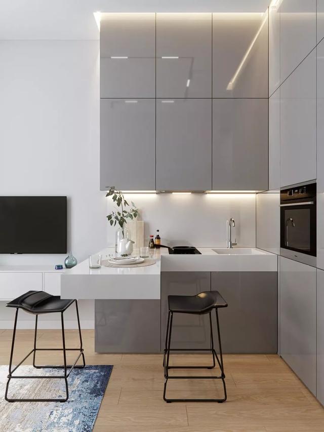 岛台并不是只有大户型才有,一般5-6平米的厨房也可拥有一个中小吧台。