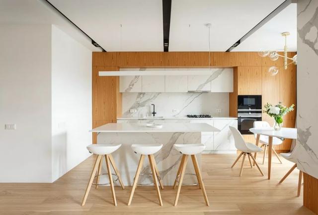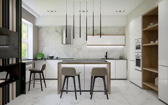 现在越来越多的人选择开放或者半开放的厨房设计,在这种情况下越来越多的人喜欢在厨房空间添加一个岛台,即可作为操作台使用,又可作为饭桌使用,还能和家人互动,一物多用。