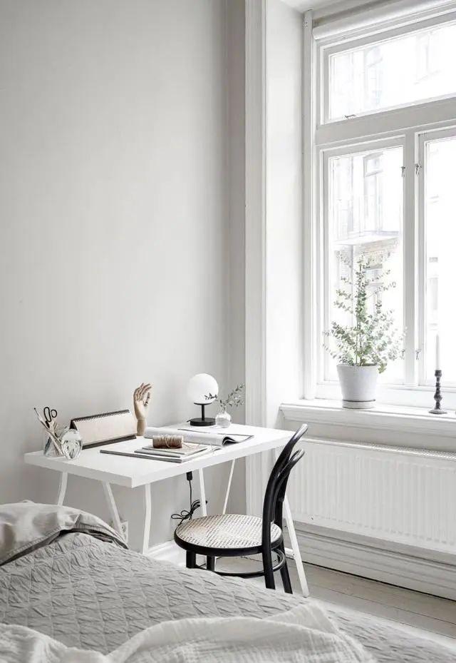 一般来说,浅色能让空间看起来更大、更通透,而较深的颜色则会更有包围感,让空间看上去显得更局促。因此,在装饰紧凑的房间时使用较浅的颜色更明智。