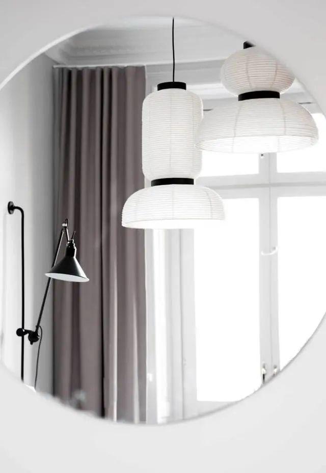 看,一面大镜子直接放置在窗户的对面,将自然光反射到房间里,整个空间看起来比实际大多了。