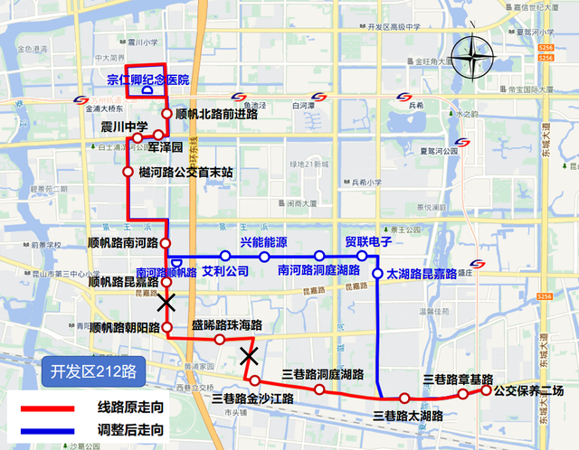 增设站点:宗仁卿纪念医院(北侧)、南河路顺帆路(南侧)、艾利公司、兴能能源、南河路洞庭湖路、贸联电子、太湖路昆嘉路(原太湖路昌溇路)