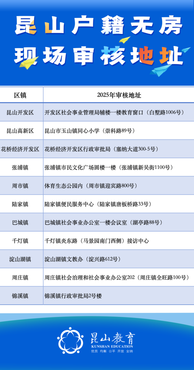 因房屋征收造成被征收人的子女入学地点发生变化的,可到新安置地就近入学,也可自房屋征收补偿安置协议签订之日起5年内,回房屋征收前的居住地学区入学。父母或其他法定监护人从网上报名系统中打印《昆山市中小学招生入学报名表(户籍生)》,确认相关报名信息后,房屋被征收人凭原房屋产权证(复印件)、房屋征收补偿安置协议、被征收人及子女户口簿、市政府征收办开具的到相关施教区学校报名的证明,于6月14日到学校现场审核;如到新安置地就近入学,还须提供新安置房屋产权证或商品房买卖合同。