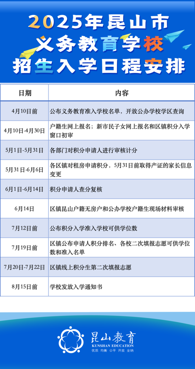 申请人须于4月10日~4月30日17时前登录“昆山市幼儿园、中小学招生入学填报系统”,按《2025年招生入学填报手册(新市民)》提示,注册登录后,进入“中小学新市民填报”,填写相关信息,并按要求录入相关附件。申请人也可通过昆山市人民政府网的“招生入学”相关链接或者通过“智慧昆山APP”和“鹿路通APP”进行填报。