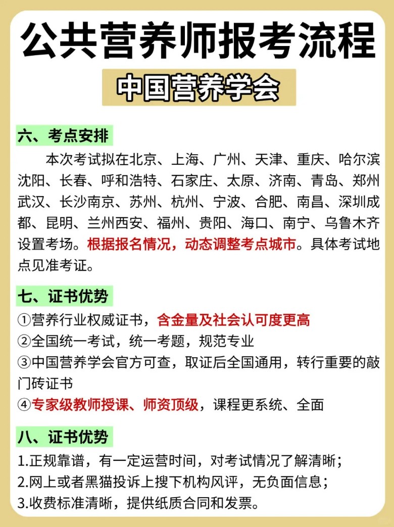 中国营养学会【公共营养师】中高级公共营养师报考详情介绍来了开课快,线上学习,线下考试,一年四期,通过率高学习考证优选,含金量超高。一年4次考试:3月、6月、9月、12月一、评价级别四级公共营养师、三级公共营养师。二、 时间安排1. 报名时间:预计报名截止2月24日,预留几天时间录系统,交资料。2. 考试时间:预计2024年3月26日09:00-11:30三、考试方式考试内容包括理论知识和技能,均采用机考的形式。1. 考试时长:理论知识90 分钟,技能60 分钟,合计150分钟。2. 考试分值:理论知识100分,技能100分。3. 考试题型:单项选择题、多项选择题。四、 考点安排本次考试拟在北京、上海、广州、天津、石家庄、太原、沈阳、南京、苏州、杭州、合肥、南昌、济南、青岛、郑州、武汉、长沙、深圳、重庆、成都、昆明、西安、西宁设置考场。根据考试申报情况,报名系统会动态调整考点安排。具体考试地点见准考证。专业工种:公共营养师报考条件:中专或高中学历 可以报考中级(四级),大专及以上学历可以报考高级(三级)报名资料:1、个人电子报名表2、身份证正反面扫描件3、1寸白底电子证件照4、学历证扫描件以及其他相关证明文件开课快,线上学习,一年四期,通过率高学习考证优选,含金量超高。昆山才思教育江老师19941905958玉山城北紫竹路九方街九栋三楼