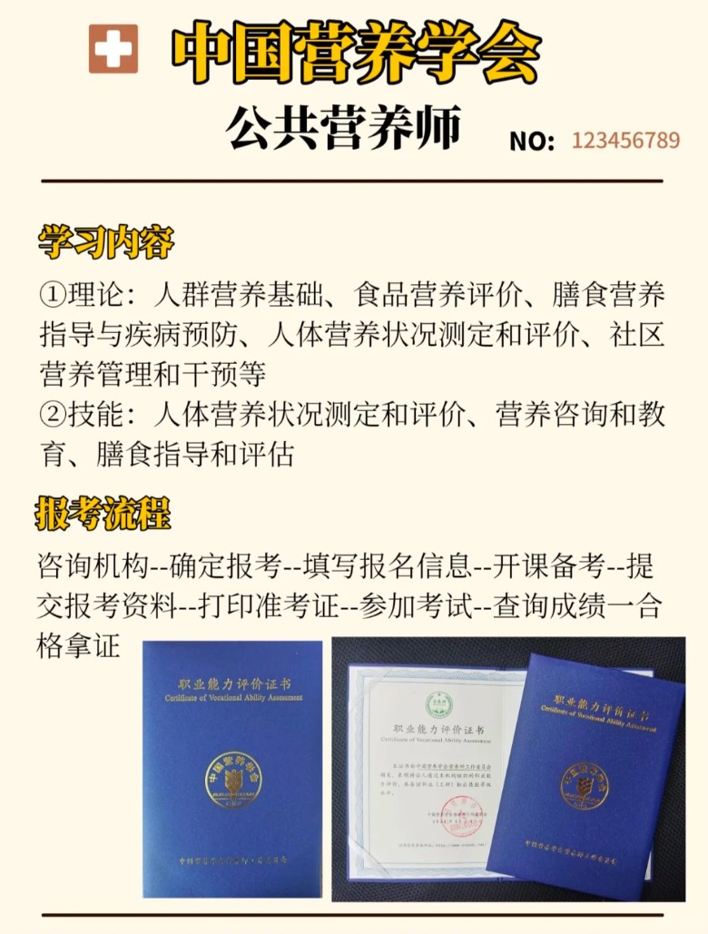 中国营养学会公共营养师9月新考期报考准备🌿工种:中国营养学会公共营养师考试:9 月 27 日(考前 1 个月截止报名,抓紧!)截止:随时可报,考前一个月截止报考—🌵报考条件:三级(高级):大专 + / 相关专业在校应届生四级(中级):高中 / 中专 + 3 年经验 / 中专相关专业 + 应届生🍬考试:线下机考(理论 + 技能),单选 + 多选,两科≥60 分合格✅理论知识90分钟,技能60分钟,合计150分钟✅理论100分,技能100分,两门同时60分通过考核就业方向有:✅ 从事或准备从事营养和食品教学、科研,食品或保健食品生产经营,食品卫生监督和检测,营养配餐,营养咨询的人员;✅ 宾馆、餐厅、机关、学校、幼儿园、社区、医疗卫生等单位从事餐饮工作者及管理人员;✅ 健身教练、美容机构人员、高级管家及社会其他有志于从事营养相关职业的各类人员;✅ 大中专本科院校在校学生,医院营养保健科室人员,相关临床科室人员;✅ 对营养、保健、健康知识有浓厚兴趣者。想调理自己或家人健康的人等。✅ 医疗机构:医院临床营养科,配合医生进行患者营养治疗。✅ 健康管理机构:为会员提供体重管理、亚健康调理等服务。✅ 学校/企业食堂:设计营养餐单,确保膳食均衡。✅ 食品行业:参与产品研发(如低糖、高蛋白食品)。✅ 政府/社区:开展公共卫生项目,如老年人营养改善计划。——🌸想进入营养行业的同学报考中国营养学会公共营养师 昆山才思教育周老师19941908283玉山城北紫竹路九方街九栋三楼