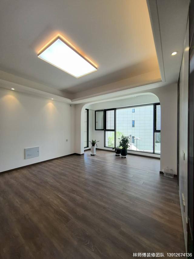 阳台改造更是让人眼前一亮!地面铺上木纹砖,与客厅地面无缝衔接,视觉上拓宽了空间,让阳台不再是孤立的 “小角落”。中间设计了一个精致的拱形门,线条柔和优美,为空间增添了几分浪漫气息。大大的落地窗前,摆放几盆绿植,阳光透过玻璃洒进来,绿植生机勃勃,在这里打造一个休闲休息区,看书、喝茶、晒太阳,惬意十足,轻松享受慢时光。