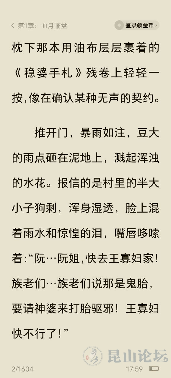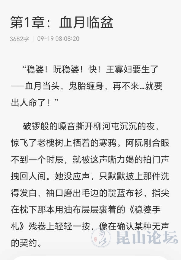 失业一个多月了,一直在写小说和短故事赚的小钱,今天发帖子,是恳请昆山论坛上的友友们,特别是平时喜欢看小说故事的友友们,帮个忙,上那个蕃茄的免费小说及畅听等,搜一下作者:旭书!或搜小说《阴阳稳婆手札》,阅读收听几章,还有其他小说短故事,作者是旭书,没有办法,靠阅读量才有收益,恳请各位支持一下。这是小说的开头:“稳婆!阮稳婆!快!王寡妇要生了——血月当头,鬼胎缠身,再不来…就要出人命了!”
