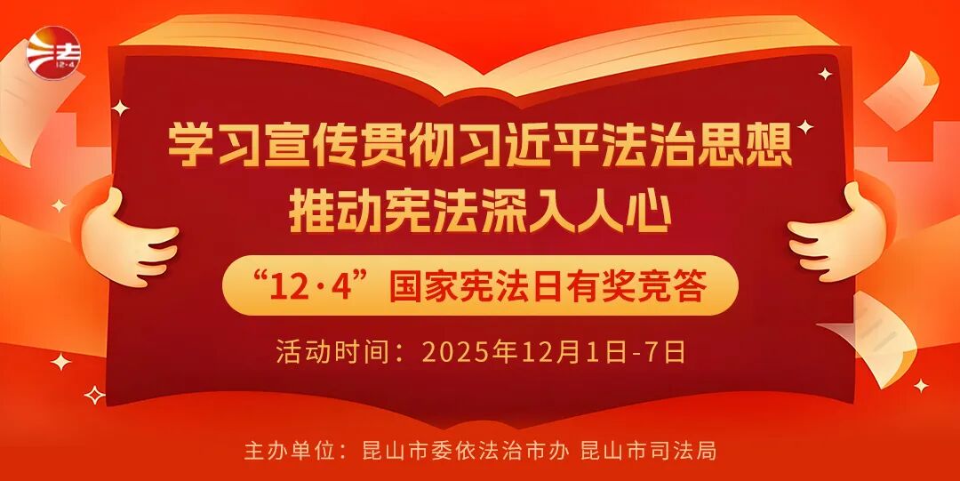 识别下方二维码,进入“尚法昆山全民学法平台”国家宪法日有奖竞答页面,即可参与答题。