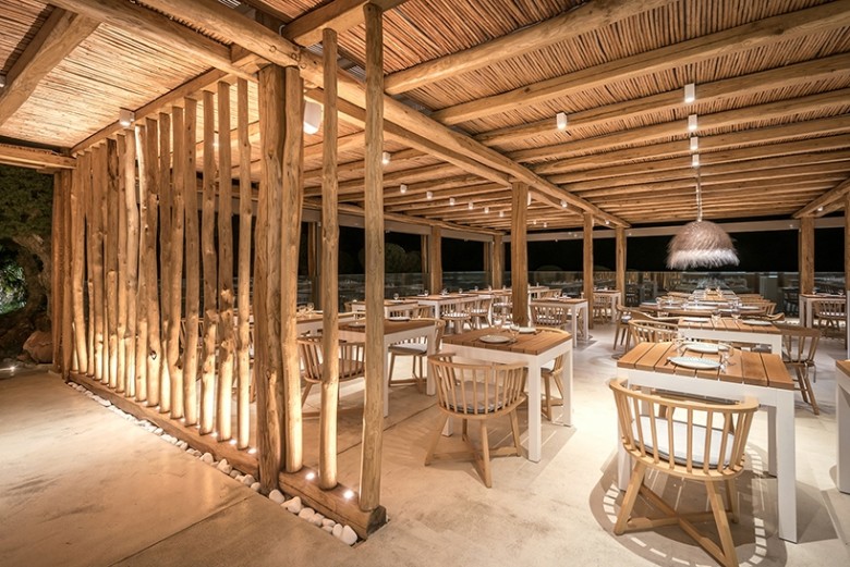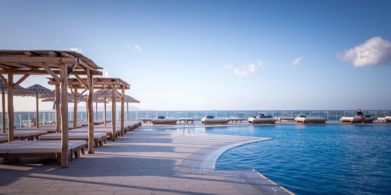 , elastic architects was commissioned to revamp the outdoor pooland restaurant of the mitsis rinela beach resort & spa in kokkini chani.