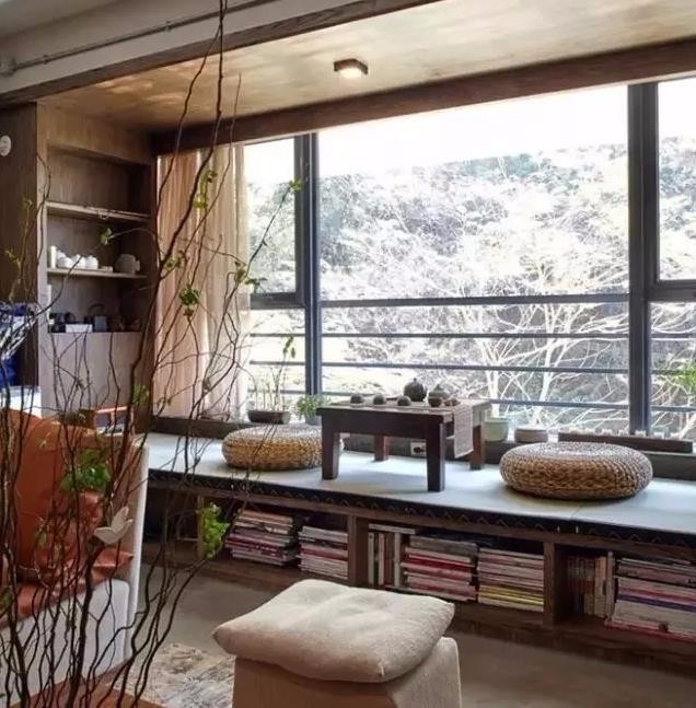 也可以把阳台纳入客厅,打一组地柜,下面放书上面下棋休闲。
