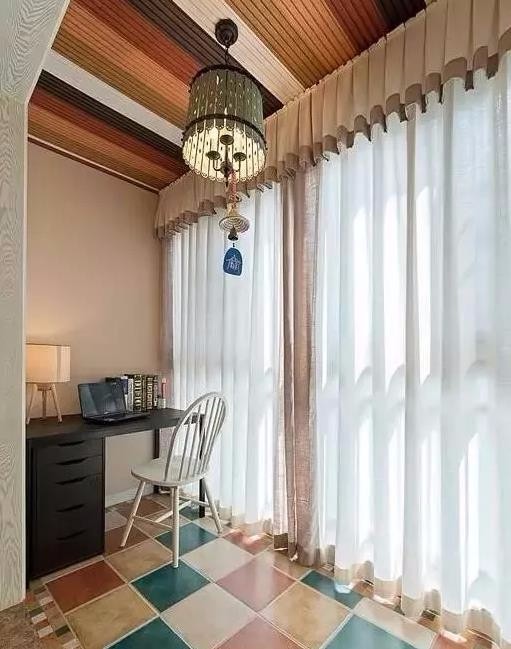 像这种纯休闲的阳台也是很好的选择,坐在阳台上喝喝茶赏赏花,纱幔又很隐私。