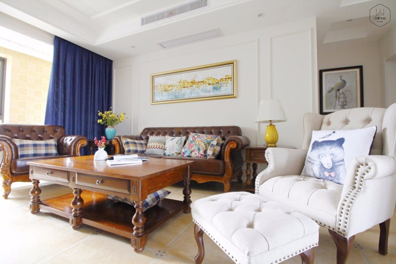 设计说明:本案是130㎡的美式风格,户型较方正,结构上改变不多,业主希望通过软装搭配突出美式风格特点,打造优雅舒适的家居氛围。另外需要适当增加储物空间,让家里的杂物都能够得到收纳;设计师在空间的整体规划上,不求多余且繁复的装饰,重点在于打造空间结构的和谐感,创造出沉稳典雅的居室环境。客厅