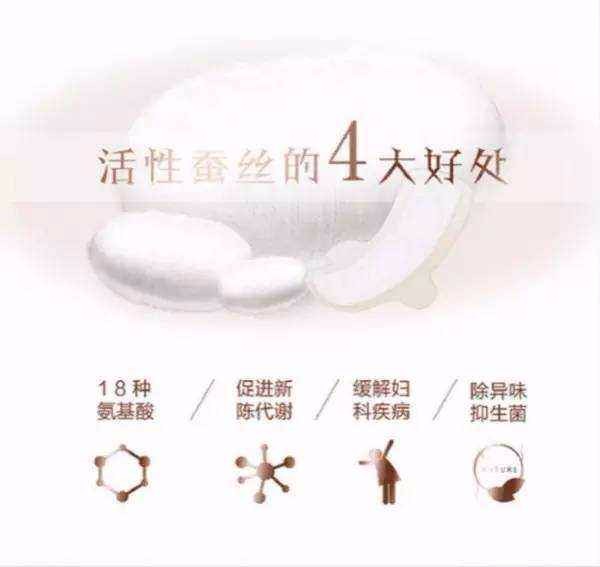 虽然大家经常使用或者接触蚕丝,但可能没有想到蚕丝用于卫生巾的原料有这样的功效吧。蚕丝的运用是从原材料上 将卫生巾的弊病消除,应该说是卫生巾史上的一次革命。