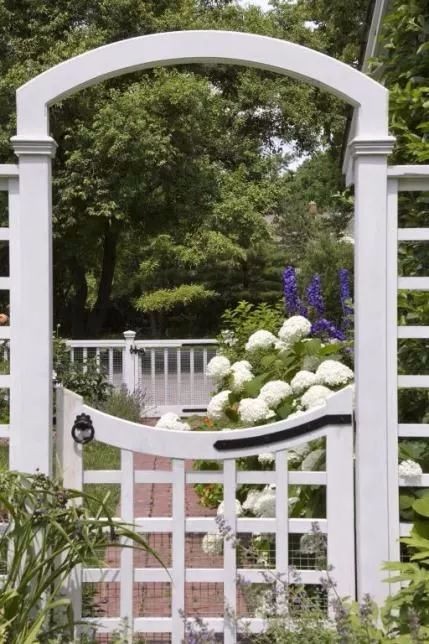 花园的空间组成,墙和栅栏都是重要的组成元素,而墙和栅栏中的门廊,则是这两个元素中的点睛之笔,它们不仅有着通行的功能,也有引导视线、限定特定的空间、装饰的功能,为花园增添特色。 花园门廊通常和植物结合在一起,为藤本植物的生长创造有利条件,形成独特的景观。 它们的建造材质分为木材和铸铁,木材具有灵活多样性的特点,并且价格相对便宜,还有一个优势,就是油漆上色,可选择的范围较广,在建造时被普遍使用。 铸铁材质可以弯曲与焊接,形成各式各样的图案,灵活性很高,使用周期也较长。