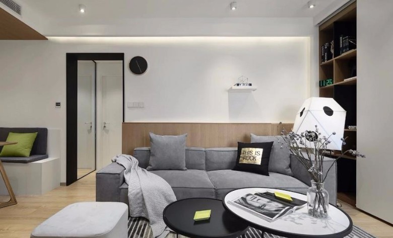 对于小户型来说,沙发背景上半部分墙面确实可以做柜子补充收纳