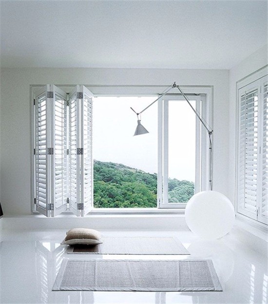 百叶窗 健身区太安静了,干净的地面除了垫子跟瑜伽球之外,没有多余的东西,在这里不管是做愈加还是冥想都容易让人静下来。白色的墙壁跟白色的百叶窗,让室内都沦为户外景色的陪衬,窗外美丽的景致透进屋里,一时分不清真假。