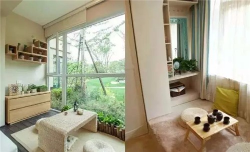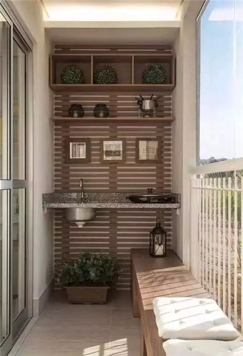 阳台作为一个特殊的空间是室内和室外的连接点,你既可以把它完全打理成一个对外的休闲花园,也可以把它“收回”到屋中封闭起来,改为另一种功能性空间,它可能是洗衣间、衣帽间,也可能是书房...... 先上几张,开个脑洞,阳台竟然可以做成惬意的泡澡之地,也可以是是健身房,亦或是宠物们的天堂。特别是有双阳台的户型,更是可以将其开发到极致。化妆间 储物间 在阳台的一边或者整个空间加建一些储物柜,可以收纳一些换季的鞋子或者杂物,甚至可以完全改成衣帽间也是个不错的选择。洗衣房 洗衣机放浴室怕受潮,放厨房又占地方,阳台可以好好利用起来。通过定制置物架,把阳台的部分空间做成洗衣房,洗衣、晾衣、烫衣,都可在阳台上完成。除了洗衣外,还可以设计收纳柜,种植花草等等。一处多用,简直不能更好了!洗衣机加上洗手池造型,化解了蹲在厕所洗衣服的麻烦,洗涮完回身又可以晾晒在顶晾杆上,非常方便!可能这种欣慰只有家庭主妇才能切身体会。吧台 如果你一直都想拥有一个浪漫又实用的角落,但是家里面积又不够大,那就移步阳台吧,在这里,品茶喝酒将成为一件最惬意的事。风声、鸟鸣,都是意外的惊喜。工作间 阳台改为工作间或者书房好处之一是光线明亮,工作学空闲时间可以远眺,缓解视疲劳。阳台改书房需要注意遮光与保暖。过于强烈的阳光会使人看不清电脑屏幕,而且可能还会伤害眼睛,因此建议设计两道窗帘:一道厚的窗帘用来防寒;一道薄的窗纱用来缓解中午刺眼的阳光。榻榻米 阳台改成榻榻米,是比较常见的改造方式,靠窗的可以呼吸新鲜空气,累了可以躺下休息,生活就要这么自在,朋友来还可以一起喝茶聊天。阳台榻榻米让封闭式阳台不再沉默,而榻榻米的吊柜设计让墙壁空间尽可能的利用起来,带来更多的收纳可能。厨 房 把阳台改造成厨房,也是很多小户型家庭会做的,倒也不失一个巧妙的设计。只是一般阳台改厨房的时候,需要特别注意做好油烟排风出口的设计,不然很容易让油烟倒灌或者影响邻居和你的关系。