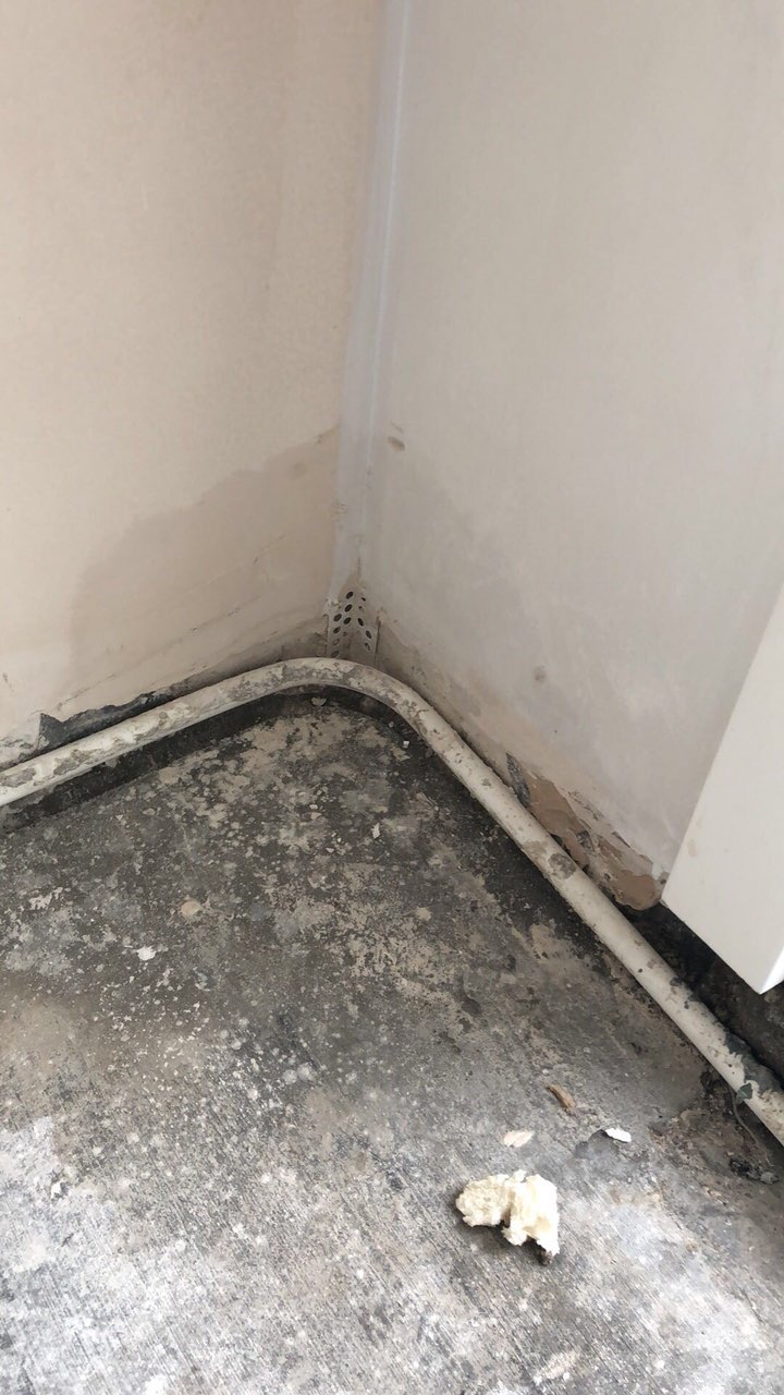 一,漏水。还真是巧了,照理装阳光房,客厅是不会漏水的,偏偏阳光房出了一丁点小问题,然后我们9楼上空调还不知道啥一直在漏水,也巧,正好漏在现在出现水印的外墙。然后他们抱着侥幸心理防水没做,或者是没做好,水就渗进去了。导致我们那一块的艺术漆和墙布打底要重做。其实也真是老天帮我们了,还好漏水,不然不知道防水问题,要是地板铺好,墙布做好,真的哭都来不及。也算万幸!