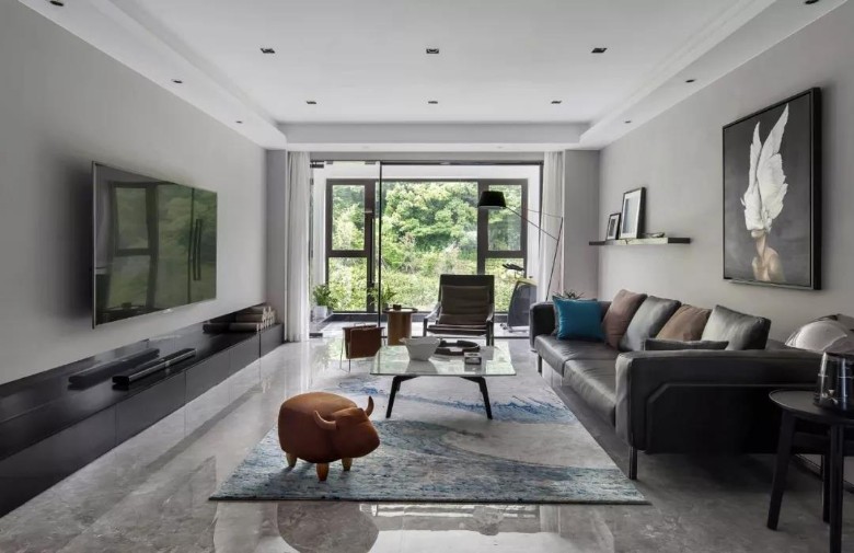 在我印象中,客厅地面用瓷砖铺贴的案例要比地板更多。瓷砖除了视觉温馨度上没有地板来得暖以外,其他貌似都是优点。比如瓷砖更容易清洁,比如瓷砖更耐『造』各种稳定性更好,比如瓷砖没有甲醛问题可以放心的用地暖等等。
