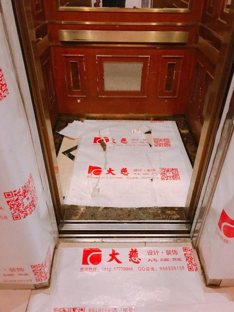 下了班车已6点出头,外面小雨霏霏,但还是要先去工地看看,毕竟是第一天施工,而且昨天一早,施工群里就发来信息说室外门口的瓷砖坏了,当时还未施工,担心物业投诉是施工搞坏的,所以许工电话和物业沟通后才继续施工。然而,下午4:30还是接到了物业的投诉电话,说瓷砖坏了。。。我一通解释,物业客服和我说:你去实地看看吧~好吧,我是得过去确认下。到楼上,电梯里、外及户外通道已防护起来,还算OK;原来只是翘起来的瓷砖,竟然已完全脱落,难怪物业要投诉了。看来,后面贴砖时,要和装修公司沟通下看是否可以修补起来。