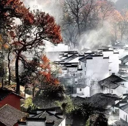 白墙灰瓦、小桥流水、黄叶纷飞、夕阳晚照,